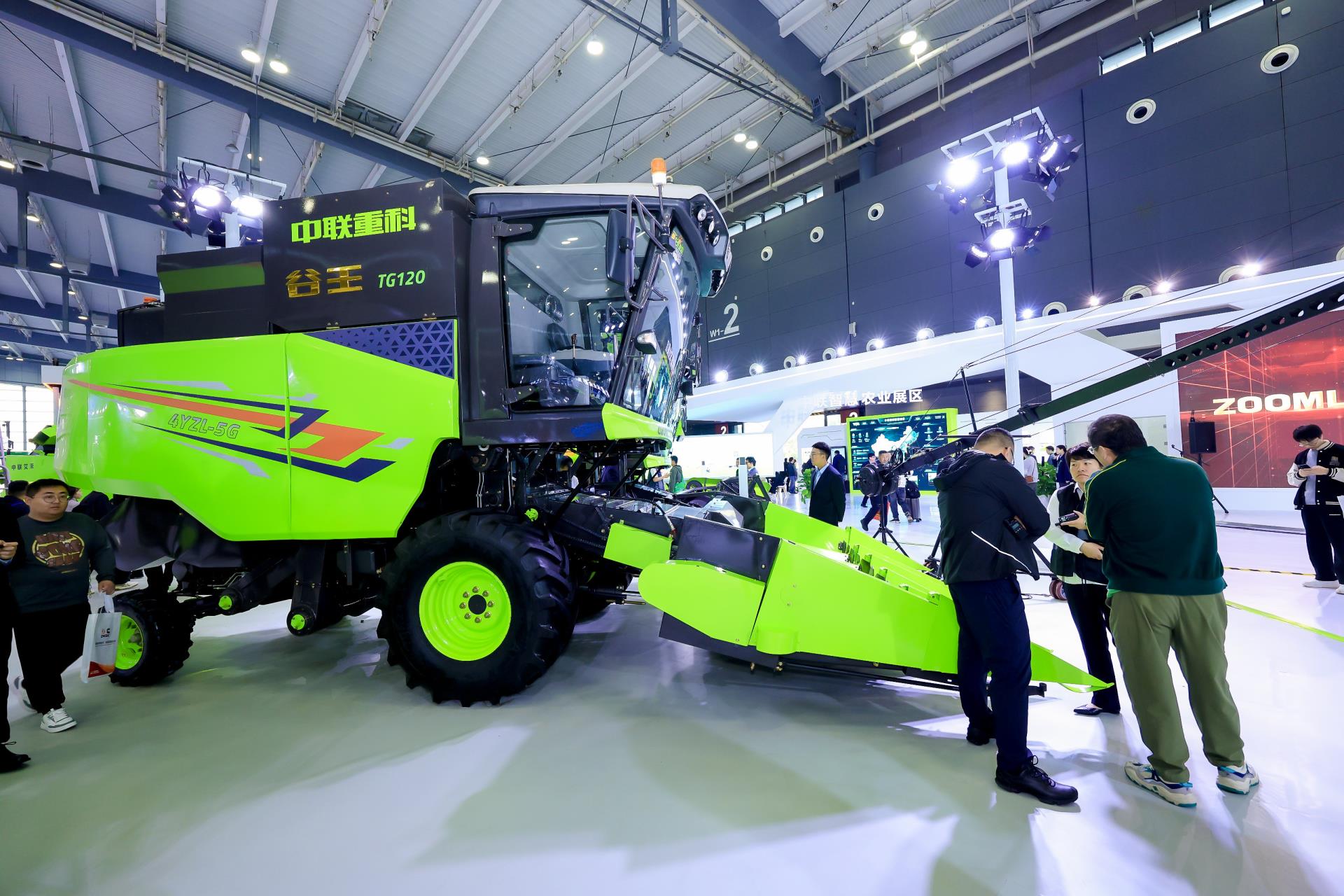两款谷物联合收割机新品也亮点纷呈。TG120作为国内专业跨区一机多收机型,具有高品质、高效率、高适应性,可靠耐用、驾乘舒适,适用于中原、东北、西北、内蒙等国内粮食主产区,主粮、杂粮均可收获,可满足不同客户的个性化需求。PL80则采用了中联重科业内首发的智能作业负荷自动控制系统,整机可自动控制行走速度和割台高度,实时调整作业速度,实现功率优化和节油自动控制,面对烂泥、深水田块如履平地,确保用户作业更高效、更可靠、更省心。