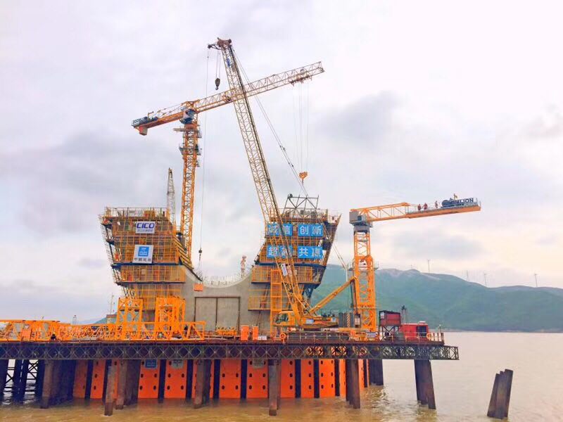 ▲中联重科塔机助建舟岱跨海大桥