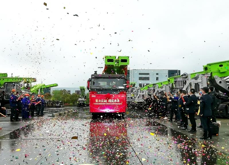 中国工程机械工业协会桩工机械分会秘书长黄志明,广东宏盛工程装备有限公司总经理陈凯强、副总经理敖荆,上海中联重科桩工机械有限公司常务副总经理陈刚,上海中联重科桩工机械有限公司副总经理张良及员工代表共同见证了这一重要时刻。