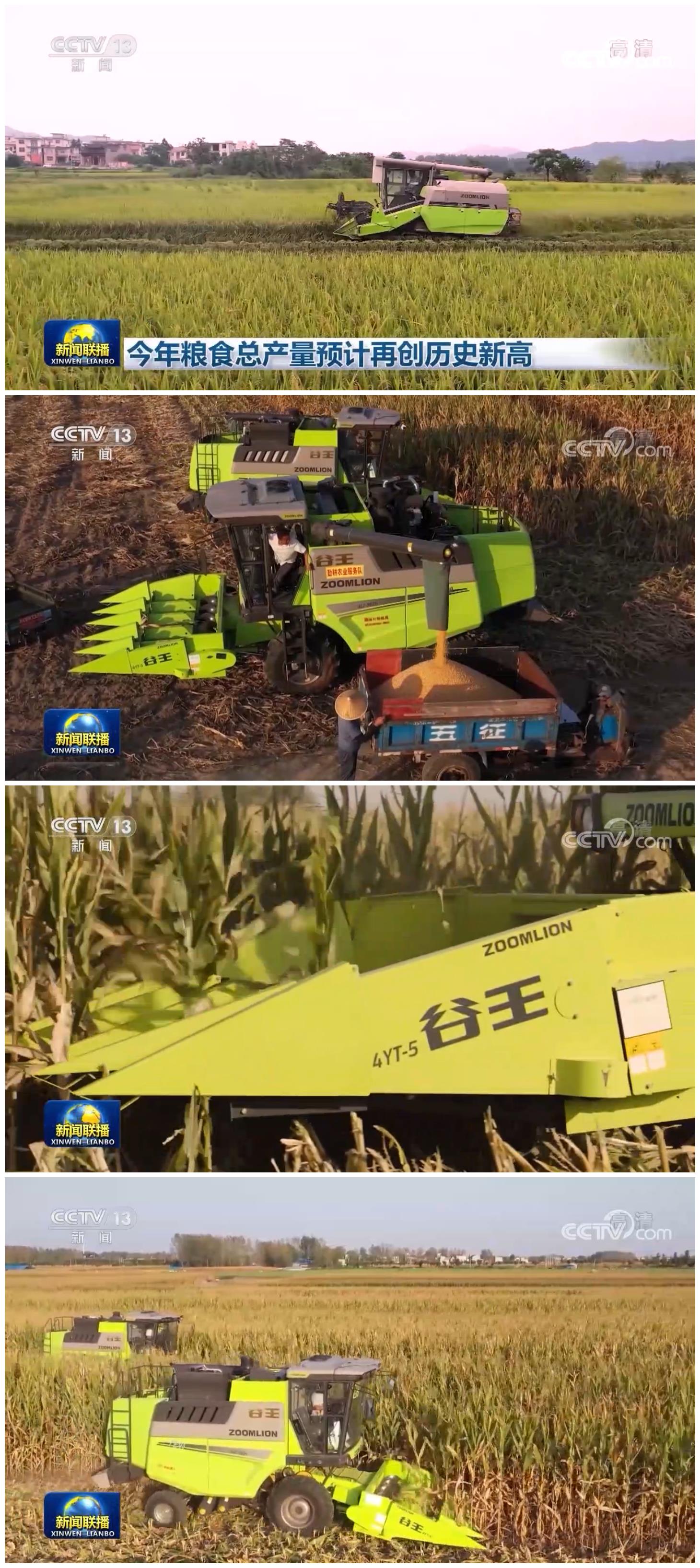 10月28日,中央电视台《新闻联播》播出了“今年粮食总产量预计再创历史新高”的主题报道,聚焦农业农村部发布秋粮收获接近九成,丰收已成定局,预计全年粮食总产量再创历史新高,连续6年保持在1.3万亿斤以上。重点展示了中联重科农机产品在田间作业的工作画面,一派丰收景象。