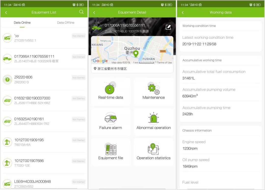 You can fully understand the working condition statistics of all equipment in here: start time, fuel consumption and so on.
