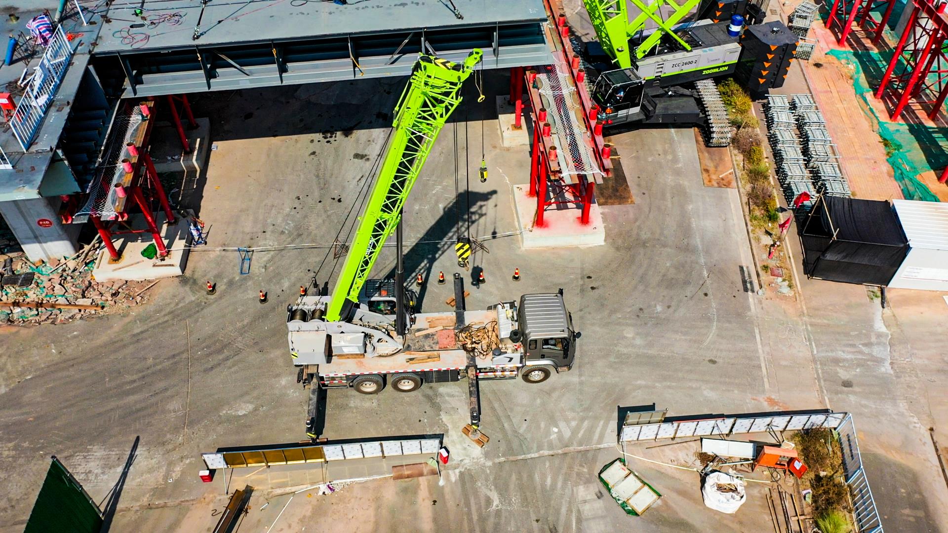 ▲中联重科ZTC250A5-2PE插电版起重机正在助力项目建设
