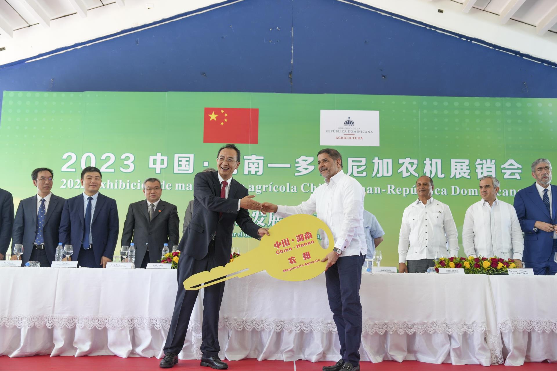 湖南省委常委、省委宣传部部长杨浩东,中国驻多米尼加大使陈鲁宁,多米尼加前总统伊波利托·梅希亚,多米尼加农业部部长林博·克鲁斯,中联重科副总裁孙昌军等出席开幕式。中国·湖南—多米尼加农机展销会为期3天,旨在加强湖南省与多米尼加在农业领域的交流互鉴,深化双方农业合作,进一步提高多米尼加农业生产效率和质量,为多米尼加农业机械化、现代化发展增添新动力,也为湖南省农业企业国际化发展提供新机遇,实现互利共赢。