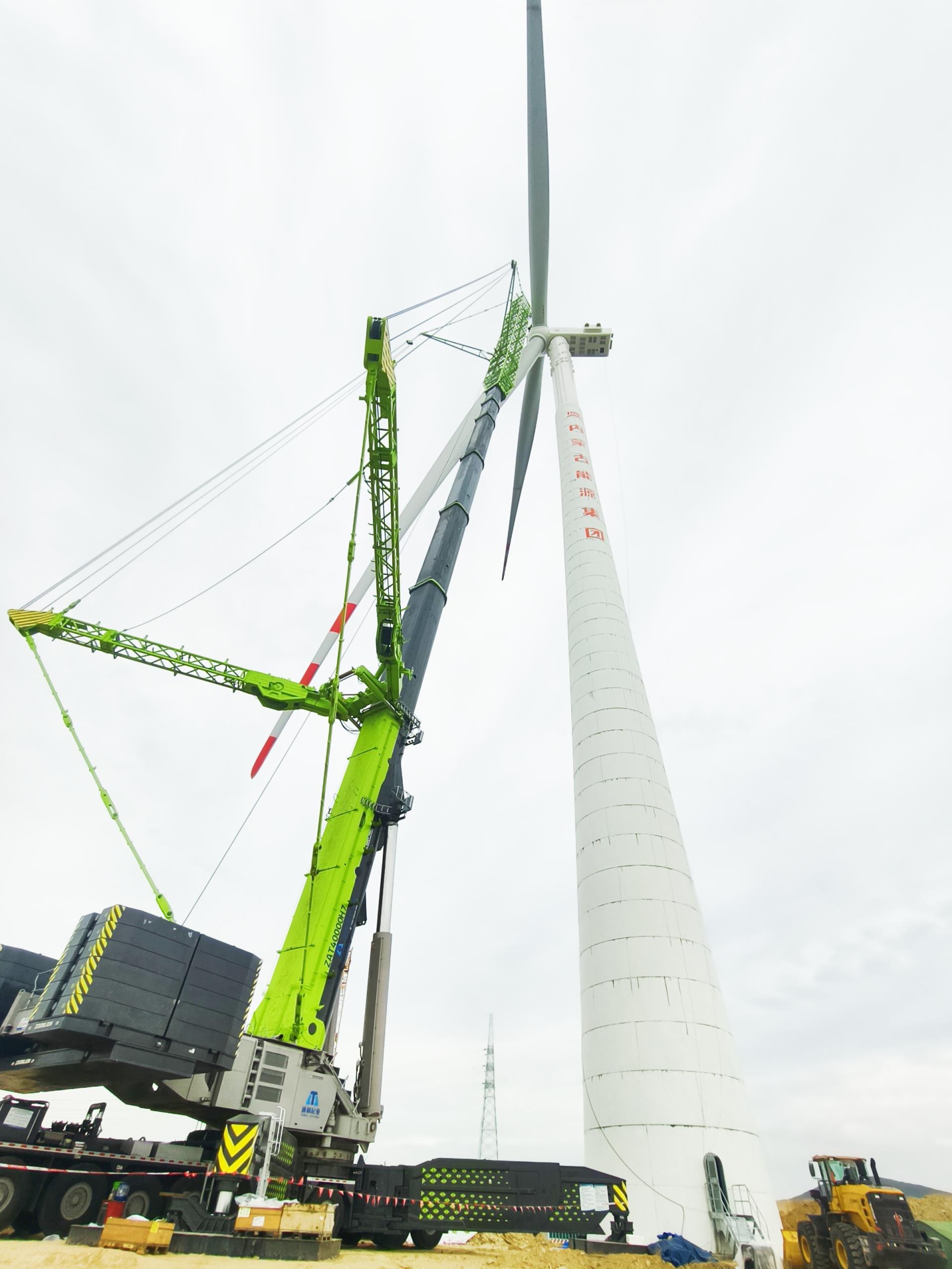7月24日上午,内蒙古自治区赤峰市,随着巨大的叶片与机舱在140多米高空上精准对接,由中联重科研制的全球**大4000吨全地面起重机顺利完成毫米级精度的混塔风电机组安装,高安全、高效率、高品质的吊装秀,彰显出这一全球吊装王者的风范。