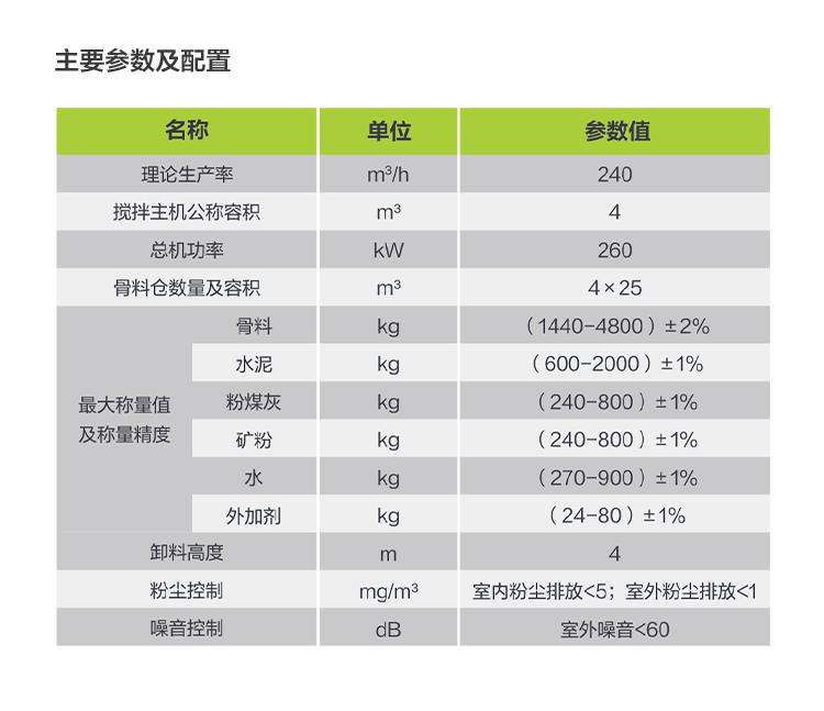 中联重科系列4.0混凝土搅拌站的配置具有搅拌性能优良、计量精确稳定、可靠性高、保养维修方便、高环保性能、模块化程度高等特点,市场口碑好,市场占有率高,是混凝土施工及商品混凝土生产的理想和首选设备。