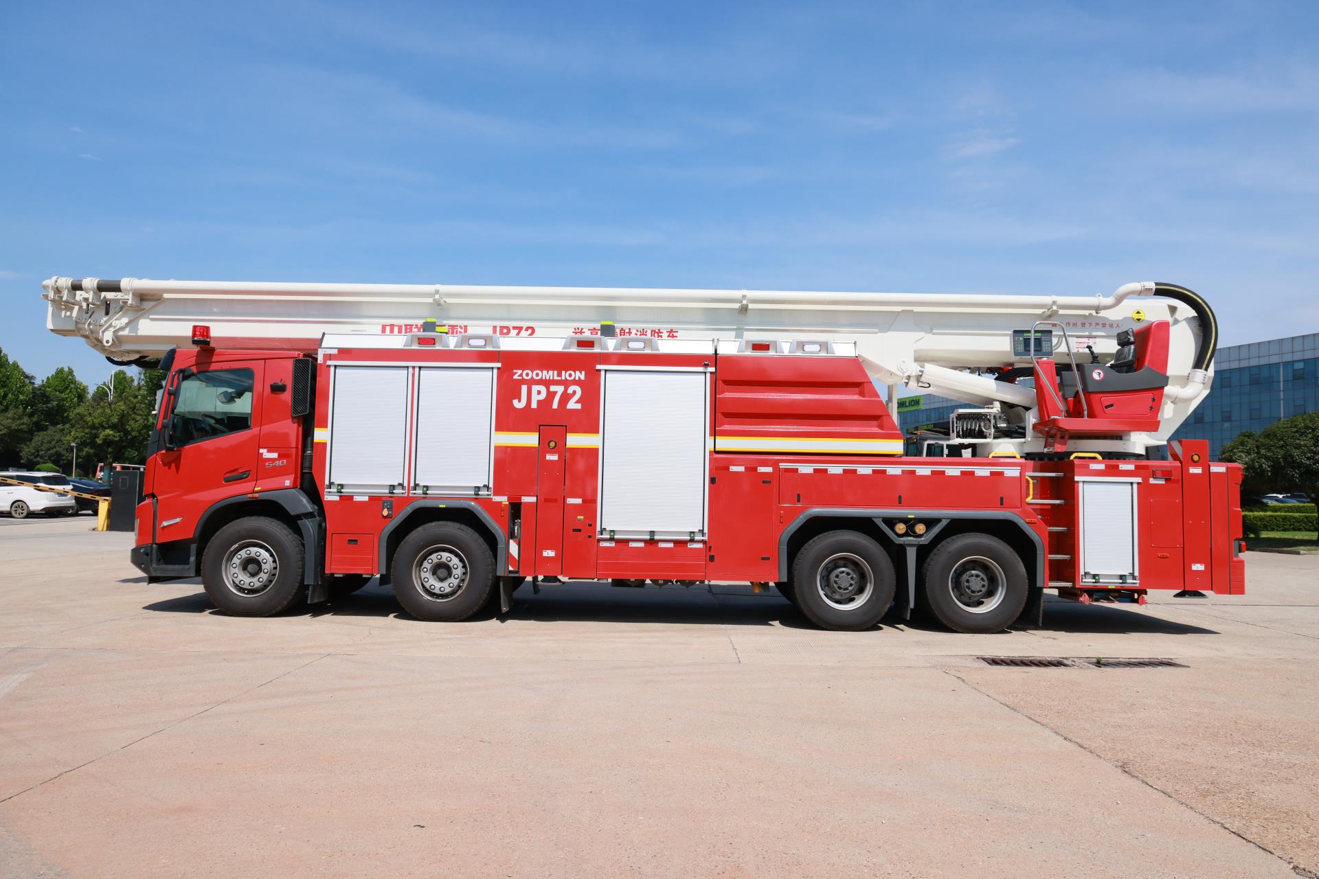 中联牌JP72型举高喷射消防车,具备强大的灭火功能,整车性能优越,快速高效,操作性、安全性及智能化控制水平处于国内先进水平。车辆采用轻量化四节伸缩主臂+三节侧置伸缩曲臂结构,兼顾大高度、大幅度、大流量高空灭火作业,可应对各类复杂环境灭火救援,适用于城镇、港口、工矿企业高层建筑以及石油、化工、油罐、仓库等大型建筑火灾扑救。