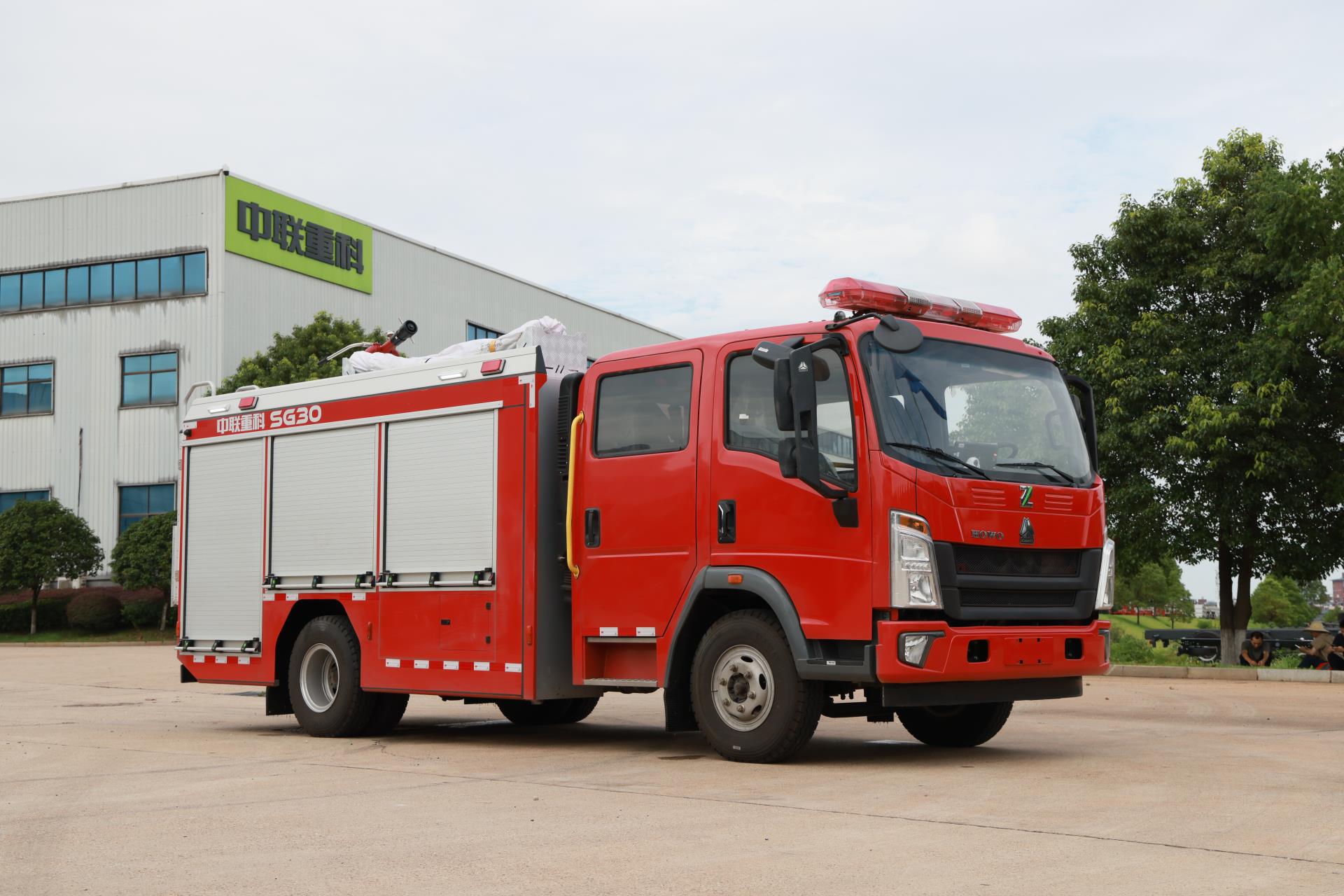 中联牌SG30水罐消防车动力强劲,结构紧凑,器材箱容量大。管路布置合理,进、出水口位置和消防器材的摆放符合实战要求,灭火效率高。车辆配置高功率发动机,外形小巧,非常适合在乡镇及县城等区域内执行灭火救援任务。
