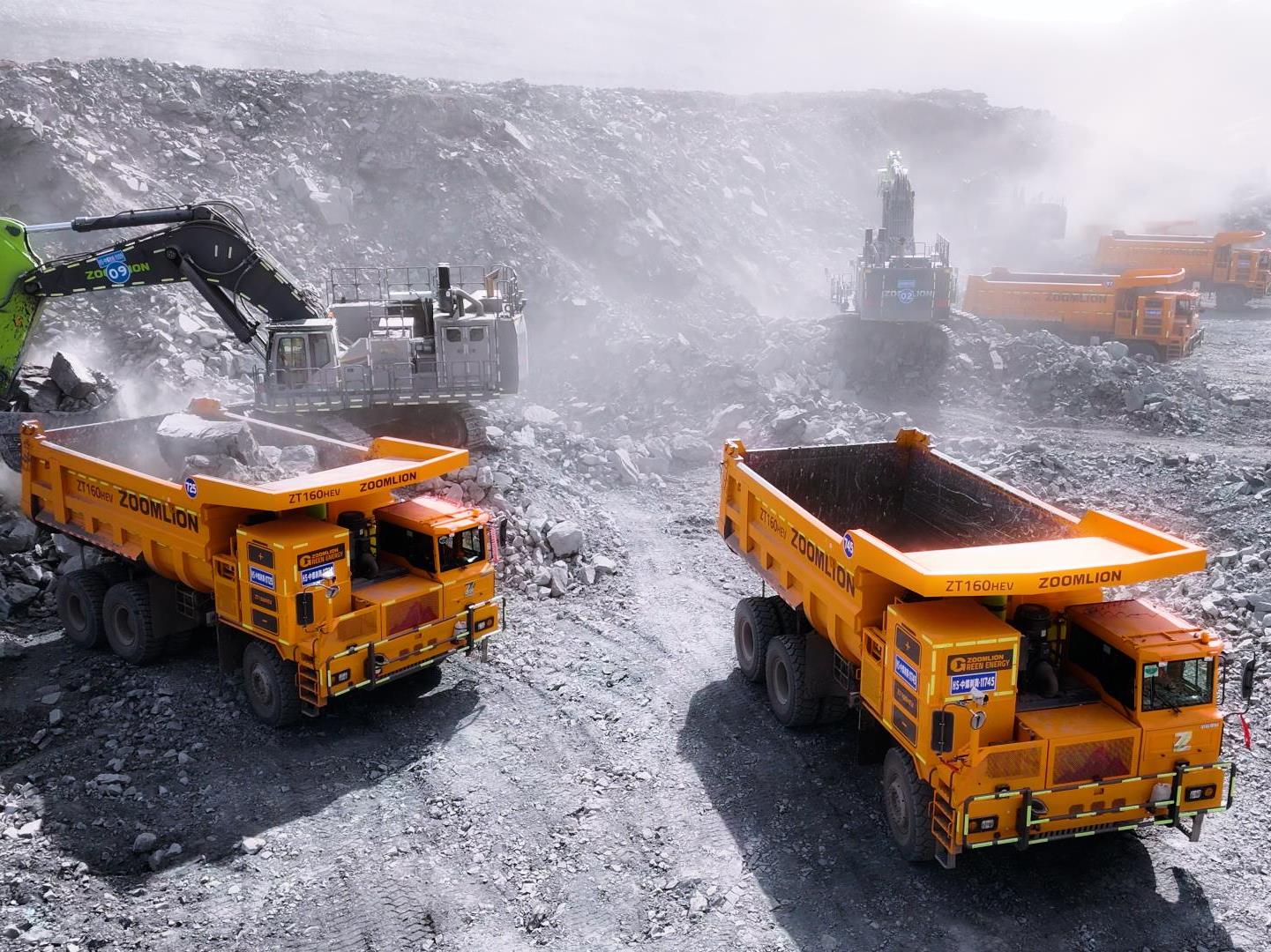 黑山煤矿数百台载重100吨混动宽体车ZT160HEV(定制涂装)与ZE1350G矿挖组成百吨级矿山黄金搭档,凭借卓越的性能、便捷的维护和可靠的使用体验,在实际作业中展现出强大优势,获得客户的高度评价,成为行业绿色高效新标杆。